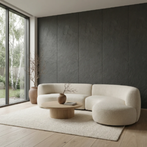 Dekorative Fassadenplatte Slate Mineral Grigio 3000×1200 mm ist ein dekoratives Paneel für moderne Innen- oder Fassadenanwendungen. Das Modell verbindet eine markante Optik mit geringer Materialstärke, einfacher Montage und hoher Beständigkeit im täglichen Gebrauch.