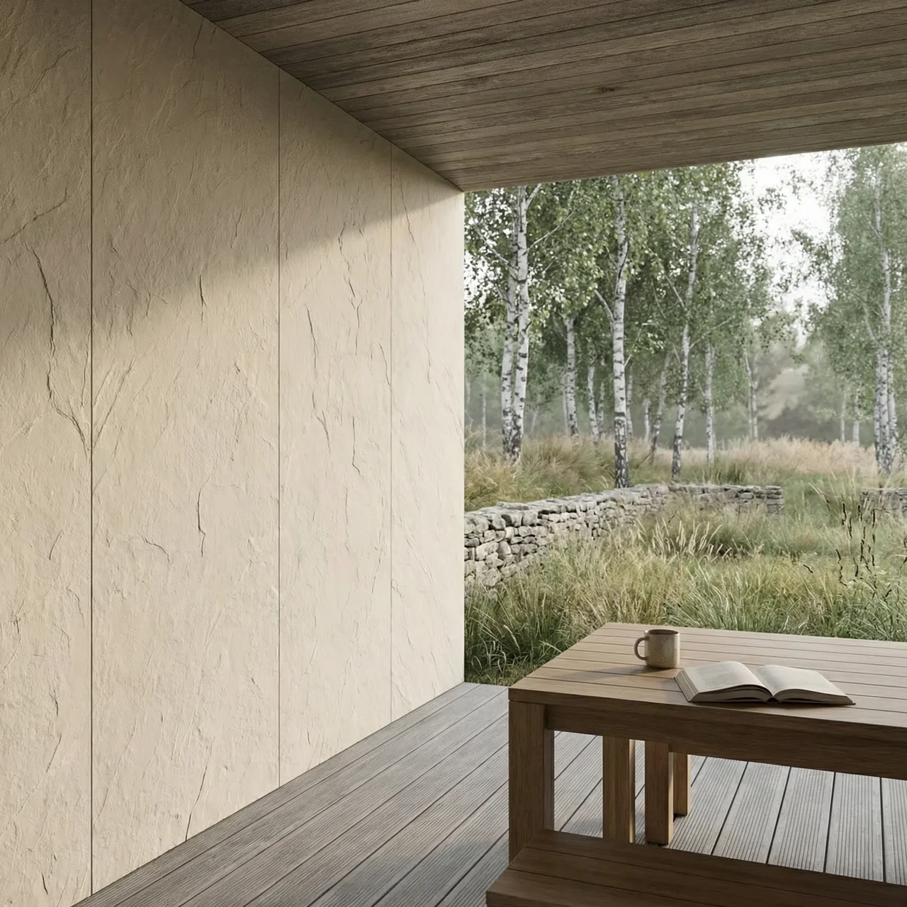 Dekoratives Wandpaneel Slate Mineral Crema 3000×1200 mm – Cremebeige ist ein dekoratives Paneel für moderne Innen- oder Fassadenanwendungen. Das Modell verbindet eine markante Optik mit geringer Materialstärke, einfacher Montage und hoher Beständigkeit im täglichen Gebrauch.