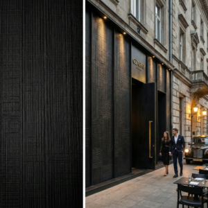 Fassadenplatte ETNO Mineral Schwarz 3000×1200 mm – Quarz-Polymer-Verbundpaneel ist ein dekoratives Paneel für moderne Innen- oder Fassadenanwendungen. Das Modell verbindet eine markante Optik mit geringer Materialstärke, einfacher Montage und hoher Beständigkeit im täglichen Gebrauch.