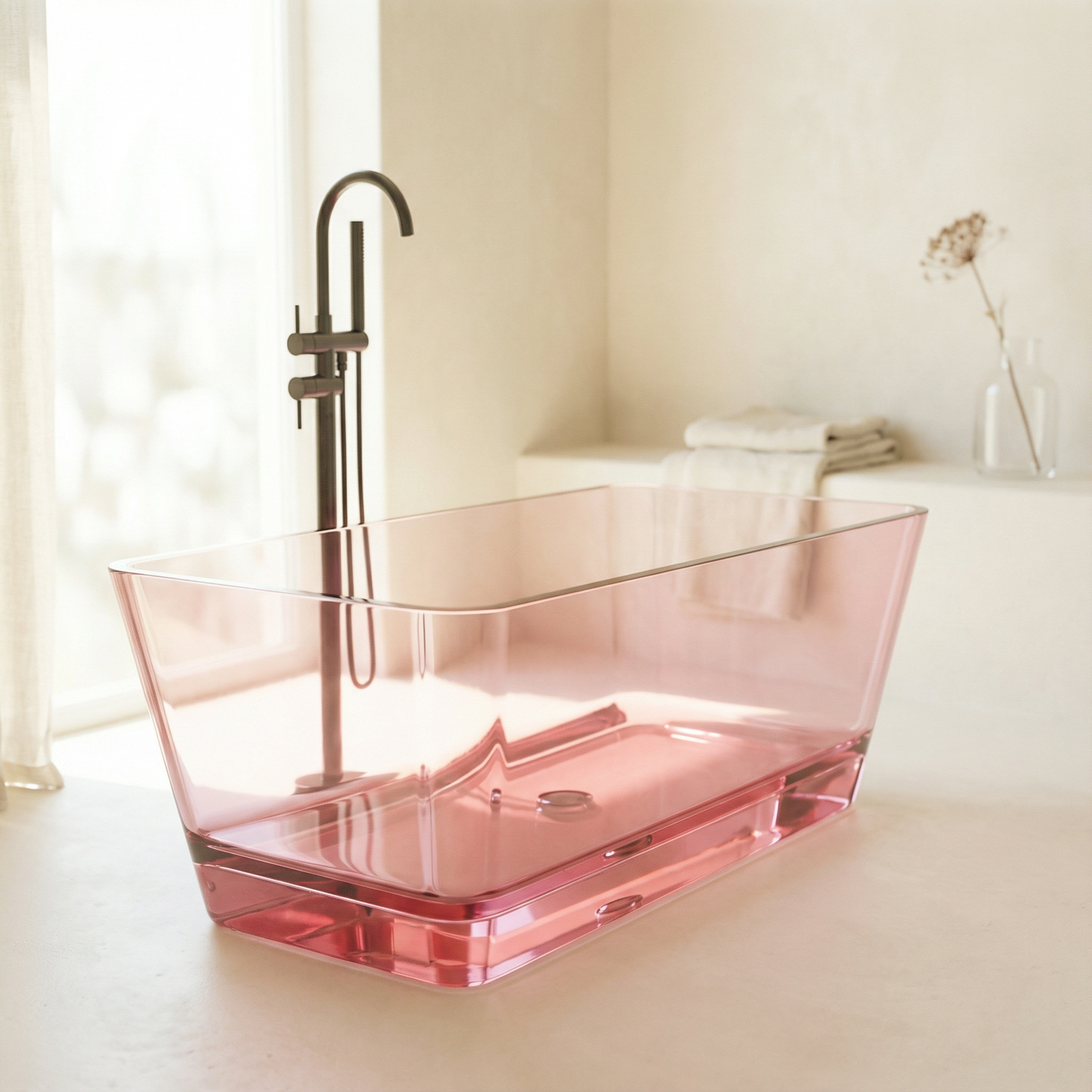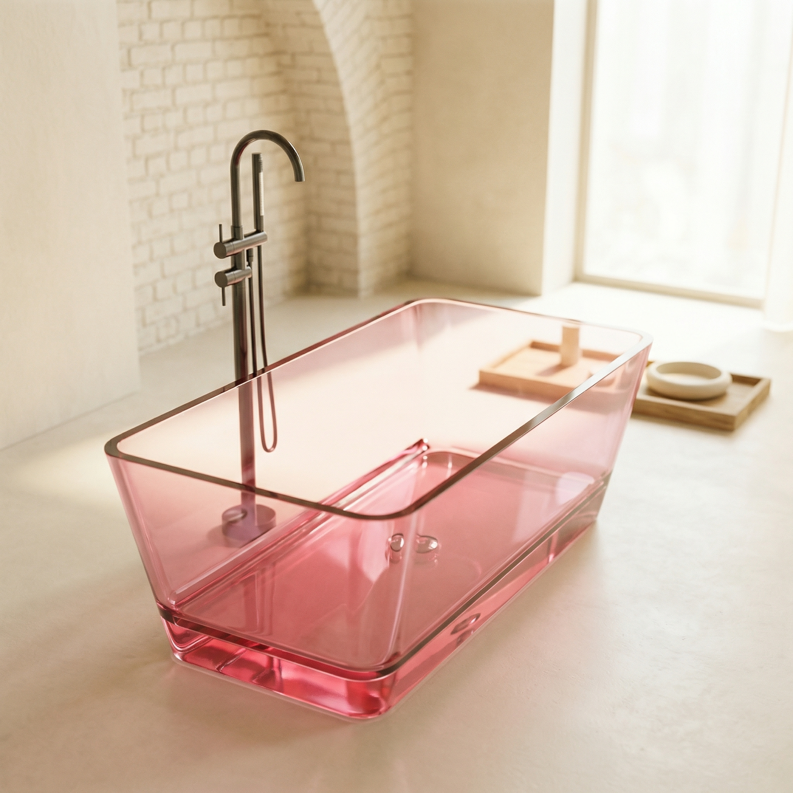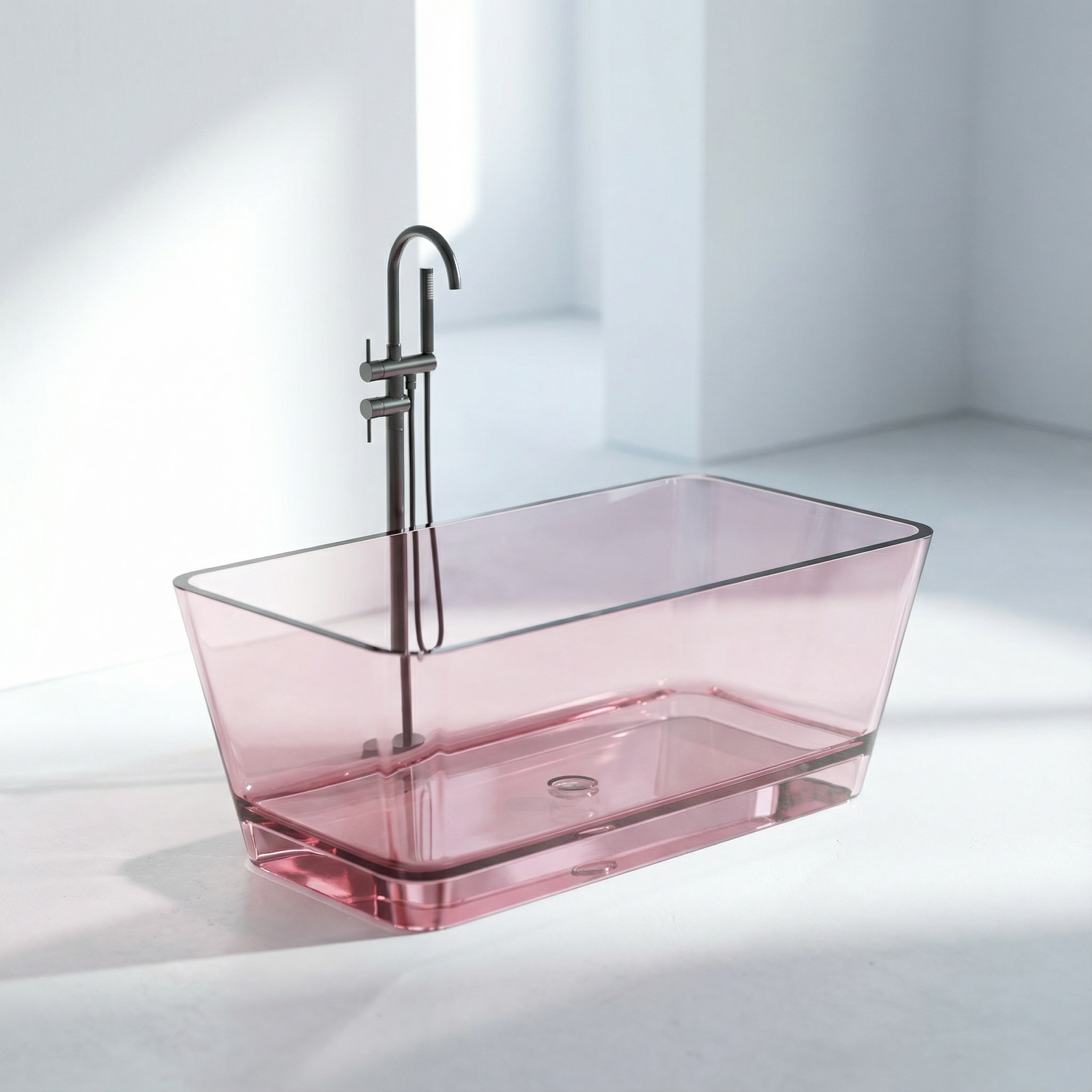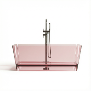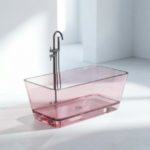 Freistehende Badewanne BURSZTEEN H-8801A 160x78x56 cm – rosa transparent ist ein hochwertiges Badobjekt mit markanter Formensprache und dekorativer Oberfläche. Das Modell wurde für moderne Premium-Bäder entwickelt und verbindet Designwirkung mit pflegeleichter Oberfläche.