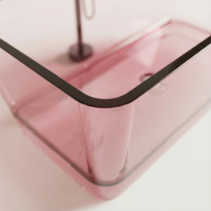 Je nach Ausführung kommt transparentes Polymerharz, Artificial Stone oder ein Mineralverbundstoff zum Einsatz. Das Material ist pflegeleicht und für den Einsatz im Bad geeignet.