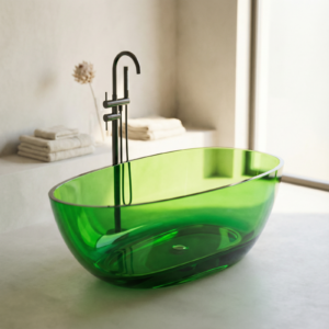 Freistehende Badewanne BURSZTEEN H-8802A 170x88x56 cm – transparent grün ist ein hochwertiges Badobjekt mit markanter Formensprache und dekorativer Oberfläche. Das Modell wurde für moderne Premium-Bäder entwickelt und verbindet Designwirkung mit pflegeleichter Oberfläche.