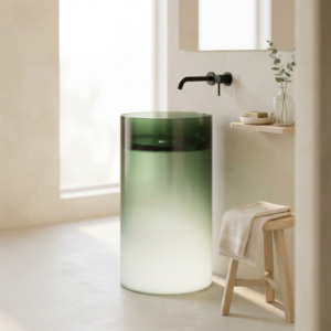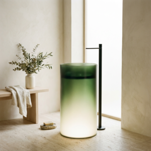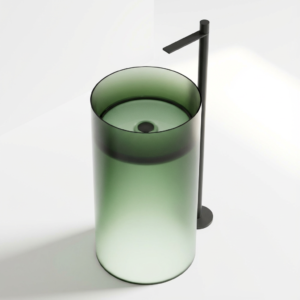 Freistehendes Waschbecken BURSZTEEN F6635 GREEN Ø45×85 cm – grün gradient ist ein hochwertiges Badobjekt mit markanter Formensprache und dekorativer Oberfläche. Das Modell wurde für moderne Premium-Bäder entwickelt und verbindet Designwirkung mit pflegeleichter Oberfläche.