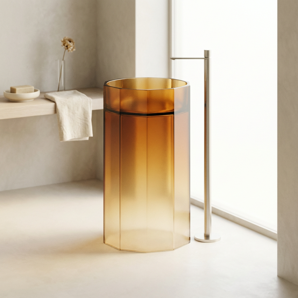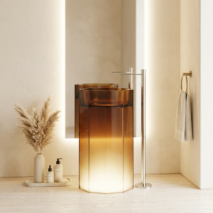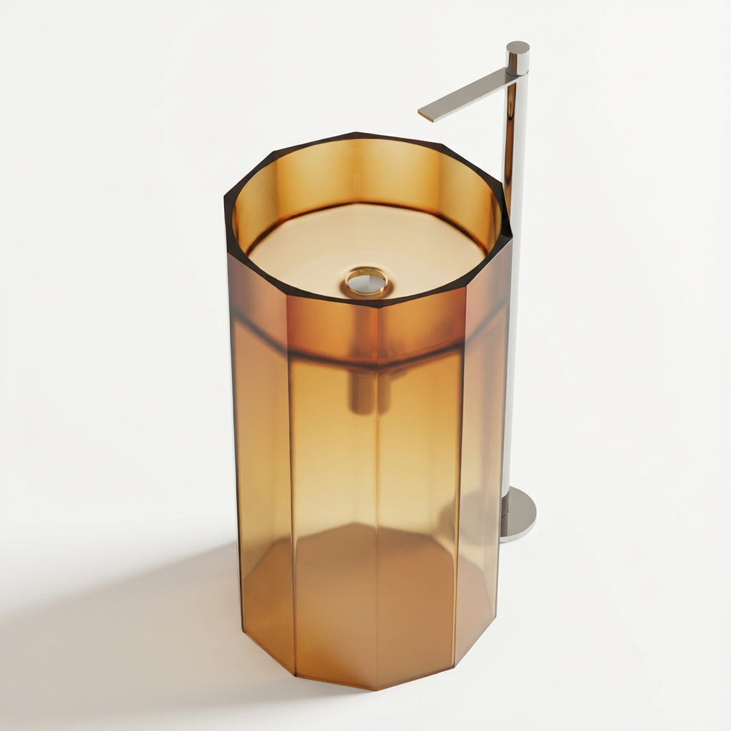 Freistehendes Waschbecken LUMINA AMBER 50x48x89 cm – bernsteinfarben transparent ist ein hochwertiges Badobjekt mit markanter Formensprache und dekorativer Oberfläche. Das Modell wurde für moderne Premium-Bäder entwickelt und verbindet Designwirkung mit pflegeleichter Oberfläche.