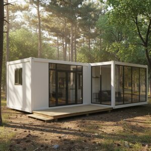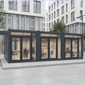 Modulcontainer FlexBox R2 – Büro, Gewerbe – Weiß 18 m² ist eine praktische mobile Raumeinheit für flexible Einsätze. Das Modell eignet sich als Büro-, Sozial-, Lager- oder Wohnlösung und überzeugt durch eine schnelle Montage sowie eine kompakte Transportform.