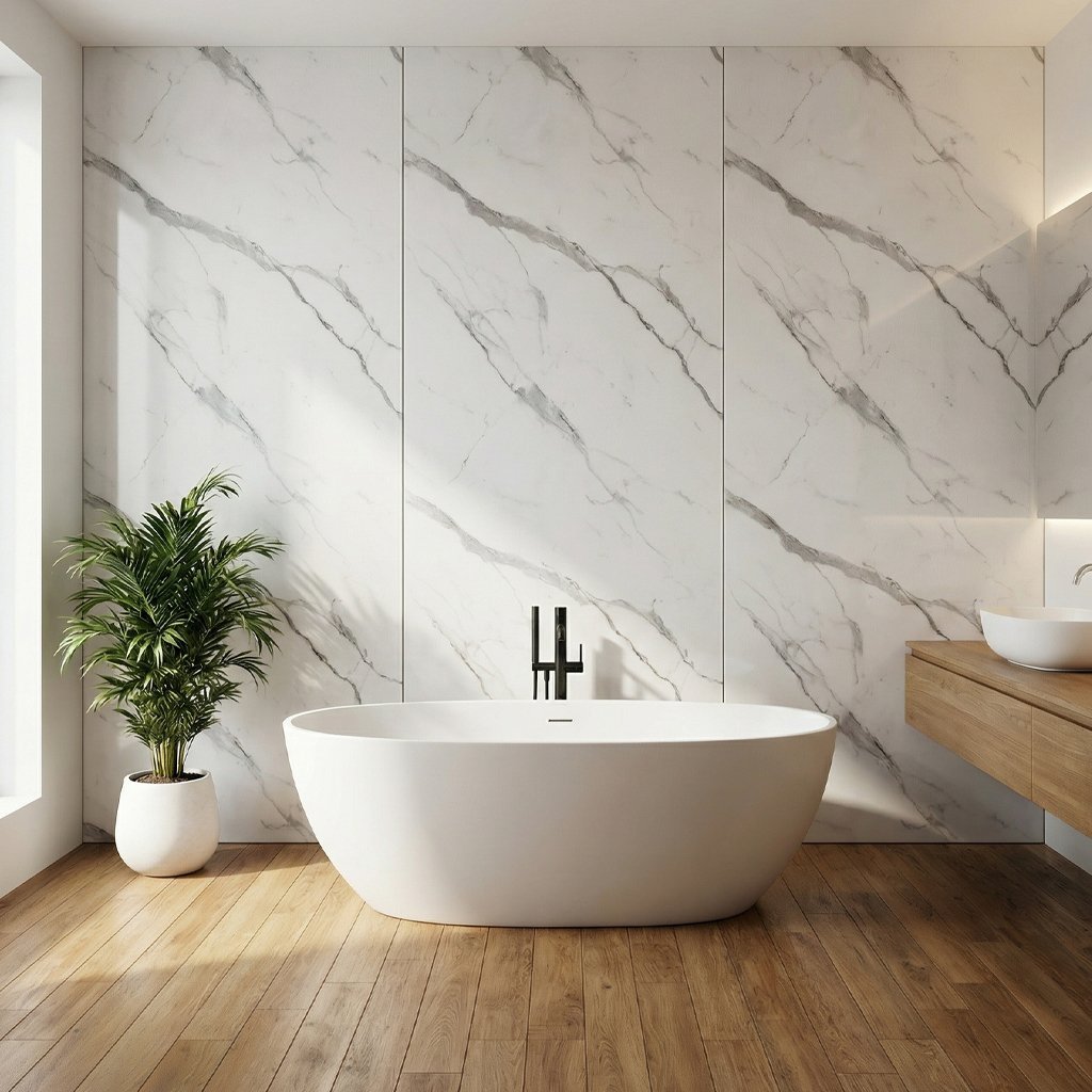 Wandpaneel C-PANEL PRO A972 2900×1220 mm – Weiß Marmor – Kohlefaserplatte ist ein dekoratives Paneel für moderne Innen- oder Fassadenanwendungen. Das Modell verbindet eine markante Optik mit geringer Materialstärke, einfacher Montage und hoher Beständigkeit im täglichen Gebrauch.