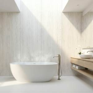 Wandplatte Optik Travertin Pietra Mineral Bianco 2400×1200 mm – Quarz-Verbundstoff ist ein dekoratives Paneel für moderne Innen- oder Fassadenanwendungen. Das Modell verbindet eine markante Optik mit geringer Materialstärke, einfacher Montage und hoher Beständigkeit im täglichen Gebrauch.