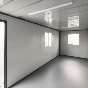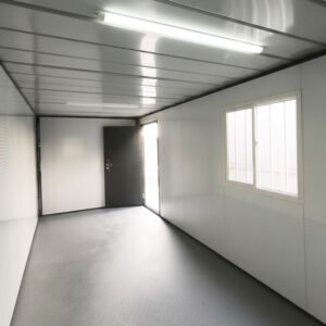 Les parois sont fabriquées à partir d’un panneau sandwich de 5 cm d’épaisseur, garantissant une bonne isolation et une grande durabilité. Le conteneur est équipé d’une installation électrique, ce qui le rend immédiatement prêt à l’emploi après le montage.