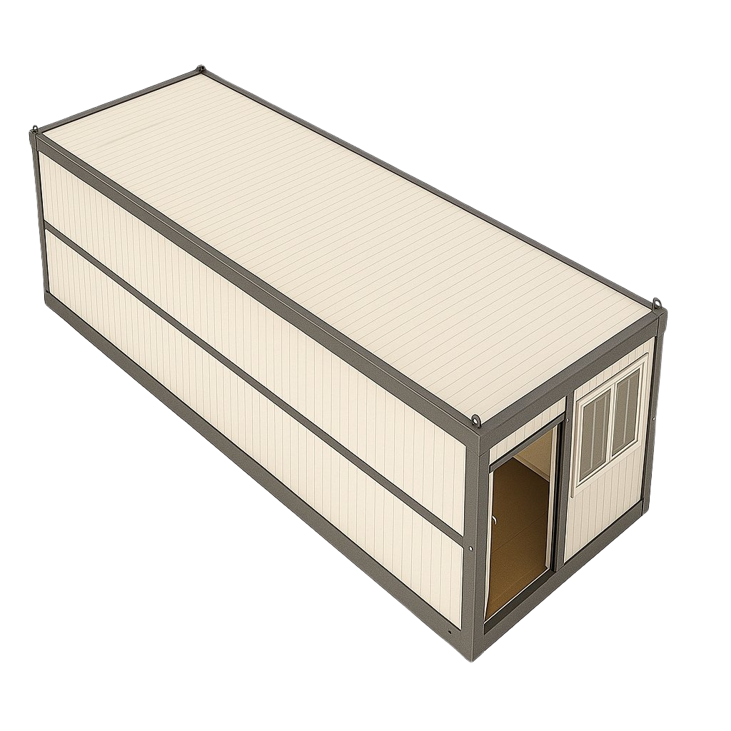 Il container pieghevole da 14 m² è una soluzione pratica ed economica per aziende e privati. Offre uno spazio funzionale a costi minimi. La struttura con pannello sandwich da 50 mm garantisce isolamento di base e solidità.