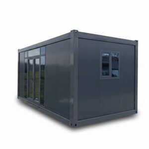 Contenitore modulare FlexBox R1 Antracite 18 m² – struttura in acciaio, pareti in pannelli sandwich da 5 cm. Possibilità di collegamento e impilamento. Ideale come ufficio, magazzino, area tecnica o micro-abitazione.