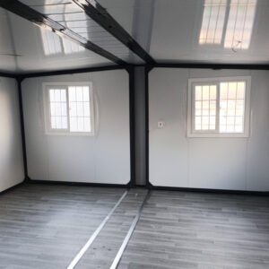 Contenitore pieghevole T1 – 25 m², ideale come ufficio, area tecnica o magazzino. Montaggio rapido in 15 minuti, dimensioni compatte da chiuso, impianto elettrico e struttura leggera e mobile.