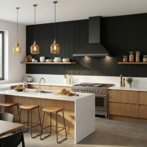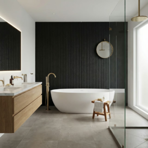 Panel ścienny BOLD Mineral w kolorze czarnym o wymiarach 3000×1200 mm to nowoczesny materiał wykończeniowy wykonany z kompozytu kwarcowo-polimerowego. Powierzchnia o charakterystycznej pionowej strukturze z głębokimi żłobieniami odwzorowuje estetykę surowego betonu architektonicznego. Grubość 7 mm zapewnia łatwy montaż bez znaczącej ingerencji w przestrzeń pomieszczenia. Panel charakteryzuje się pełną wodoodpornością oraz odpornością na zarysowania i promieniowanie UV. Zastosowanie obejmuje ściany wewnętrzne oraz elewacje zewnętrzne budynków.