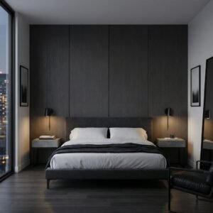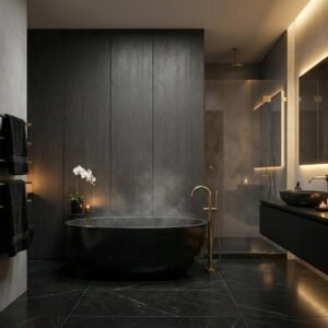 Odporność na wilgoć · Łatwość czyszczenia · Struktura drewna w kolorze ciemnoszarym · Dopasowanie do różnych stylów aranżacji