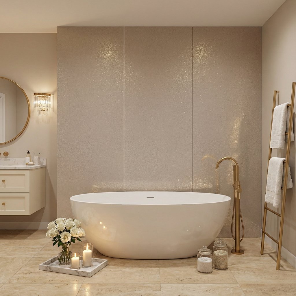 Dedykowany do wykończenia ścian wewnętrznych w domach i przestrzeniach komercyjnych · Sprawdza się w salonach, sypialniach, łazienkach, recepcjach · Odpowiedni do hoteli, biur, restauracji i butików · Uniwersalny wzór pasuje do różnych stylów wnętrz · Możliwość zastosowania w pomieszczeniach o podwyższonej wilgotności