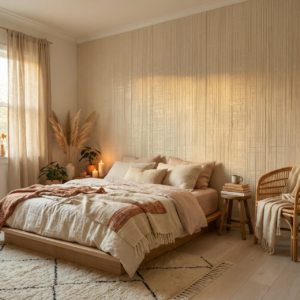 Panel ścienny ETNO Mineral w kolorze kremowym o wymiarach 3000×1200 mm to nowoczesny materiał wykończeniowy wykonany z kompozytu kwarcowo-polimerowego. Produkt wytwarzany jest poprzez wytłaczanie zmielonego kwarcu i polimeru pod bardzo wysokim ciśnieniem, co zapewnia pełną wodoodporność. Charakterystyczna tekstura inspirowana tradycyjną afrykańską sztuką rzeźbiarską tworzy nieregularną kratę żłobionych bloków z pionowymi, poziomymi i krzyżowymi nacięciami. Grubość zaledwie 7 mm umożliwia montaż bez znaczącej ingerencji w przestrzeń pomieszczenia. Panel odporny na zarysowania, plamy i promieniowanie UV, z możliwością gięcia na zakrzywionych powierzchniach.