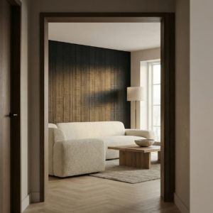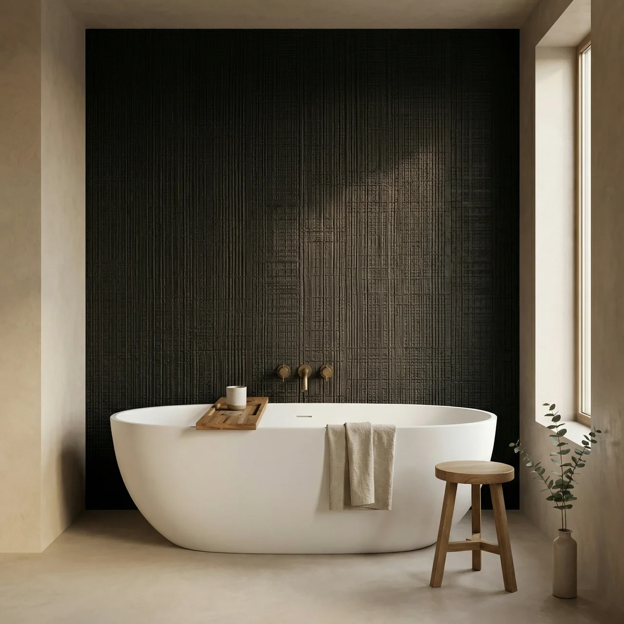 Panel ścienny ETNO Mineral Czarny o wymiarach 3000×1200 mm to nowoczesny materiał wykończeniowy wykonany z kompozytu kwarcowo-polimerowego. Wysoka odporność na warunki atmosferyczne — deszcz, mróz, cykle zamrażania i rozmrażania, promieniowanie UV. Materiał nie jest przeznaczony do stałego zanurzenia w wodzie. Produkt powstaje poprzez wytłaczanie zmielonego kwarcu i polimeru pod bardzo wysokim ciśnieniem. Charakteryzuje się teksturą inspirowaną tradycyjną afrykańską sztuką rzeźbiarską, tworząc nieregularną kratę żłobionych bloków. Panel zapewnia odporność na warunki atmosferyczne, odporność na zarysowania oraz promieniowanie UV. Grubość 7 mm umożliwia montaż bez znaczącej ingerencji w przestrzeń pomieszczenia.