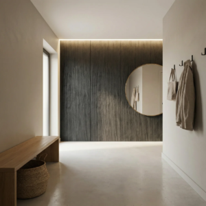 Panel ścienny Onda Mineral Nero o wymiarach 3000×1200 mm to nowoczesny materiał wykończeniowy z kompozytu kwarcowo-polimerowego. Powierzchnia odwzorowuje teksturę falistego piasku z pionowymi żłobieniami o organicznym przebiegu. Grubość 7 mm umożliwia montaż bez ingerencji w przestrzeń pomieszczenia. Pełna wodoodporność i odporność na zarysowania zapewniają trwałość w pomieszczeniach wilgotnych. Zastosowanie na ścianach wewnętrznych, w łazienkach i na elewacjach zewnętrznych.