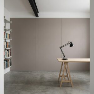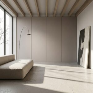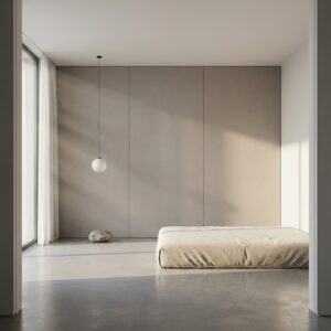 Okładziny ścienne w salonach, sypialniach, łazienkach, kuchniach i pomieszczeniach komercyjnych. Zabudowy meblowe, fronty szaf, panele dekoracyjne i elementy wystroju wnętrz. Klejenie bezpośrednie na podłoże — grubość 5 mm wymaga pełnego podparcia bez systemu rusztu. Pasuje do stylów: włoski contemporaneo, ciepły minimalizm, modern classic, wabi-sabi, śródziemnomorski. Łączy się z drewnem ciepłych tonów, białymi płaszczyznami, trawertynem, mosiądzem i czarną stalą
