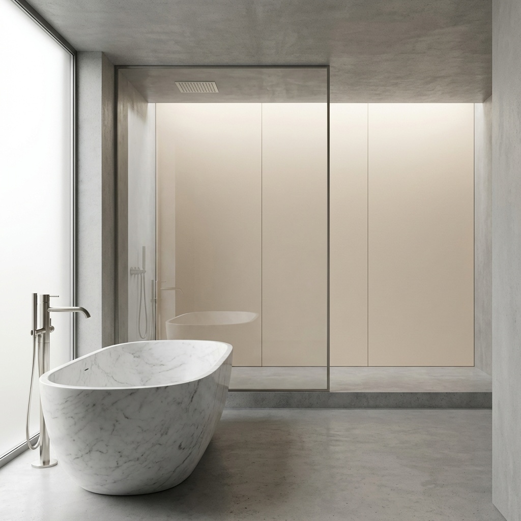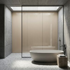 Okładziny ścienne w sypialniach, łazienkach i przestrzeniach wellness. Zabudowy meblowe w stylu warm luxury, boho chic i nowoczesnej klasyki. Komponuje się z naturalnym drewnem, rattanem, mosiądzem i lnem. Pasuje do wnętrz z białym marmurem, ceramiką ecru i pudrowym różem. Montaż wyłącznie wewnętrzny — brak potwierdzonej odporności UV na zewnątrz