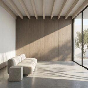 Okładziny ścienne w stylu włoskim contemporaneo, ciepłym minimalizmie i japandi. Zabudowy meblowe w wnętrzach o wyrafinowanej prostocie i modern classic. Komponuje się z trawertynem, jasnym kamieniem, lnem i ceramiką rzemieślniczą. Dedykowany do eleganckich wnętrz hotelowych, rezydencyjnych i przestrzeni wabi-sabi