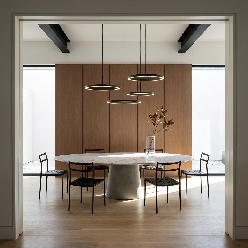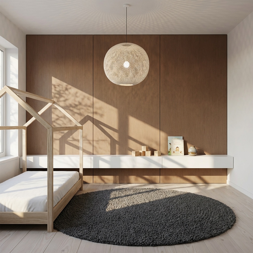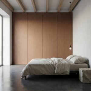 Okładziny ścienne w salonie, sypialni, gabinecie i przestrzeniach hotelowych. Zabudowy meblowe, recepcje i korytarze w stylu japandi i mid-century modern. Klejenie bezpośrednie lub montaż na ruszcie aluminiowym, łatach drewnianych. Nie wymaga podparcia na całej powierzchni dzięki sztywności 15 mm. Łatwa obróbka piłą tarczową, wyrzynarką, można wkręcać śruby bezpośrednio