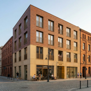Elewacje budynków mieszkalnych i komercyjnych · Fasady biurowców, hoteli, restauracji · Okładziny słupów, filarów i elementów konstrukcyjnych · Obudowy balkonów i tarasów · Wykończenie ogrodzeń i murków · Powierzchnie płaskie i zakrzywione · Montaż na różnych podłożach: beton, tynk, styropian z siatką, płyty OSB