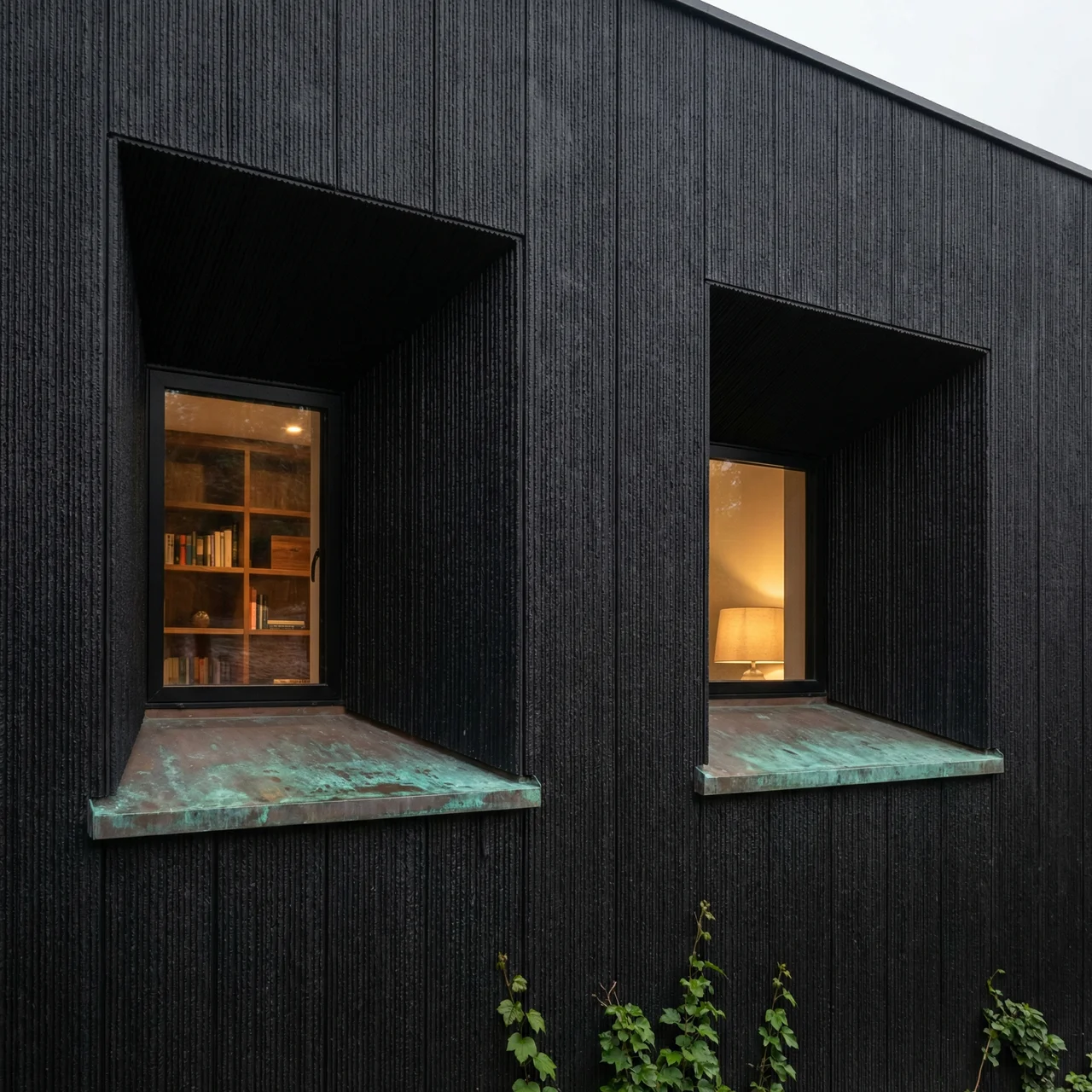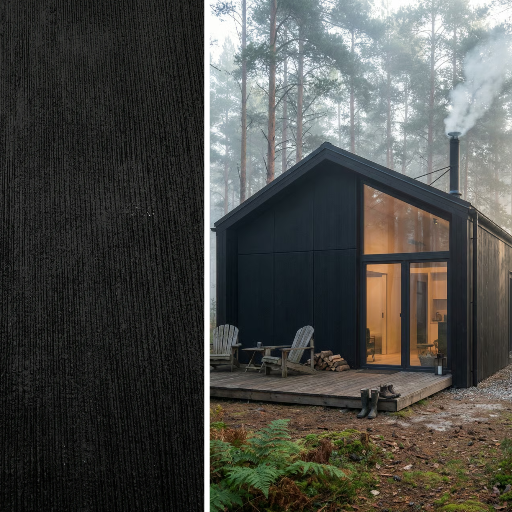 Charakterystyczna pionowa struktura z głębokimi, nieregularnymi żłobieniami · Estetyka surowego betonu architektonicznego · Kolor czarny z subtelnymi przejściami tonalnymi · Wielkoformatowy wzór na powierzchni 3000×1200 mm · Matowe wykończenie odporne na warunki atmosferyczne i blaknięcie