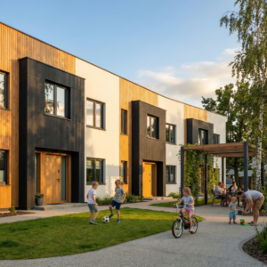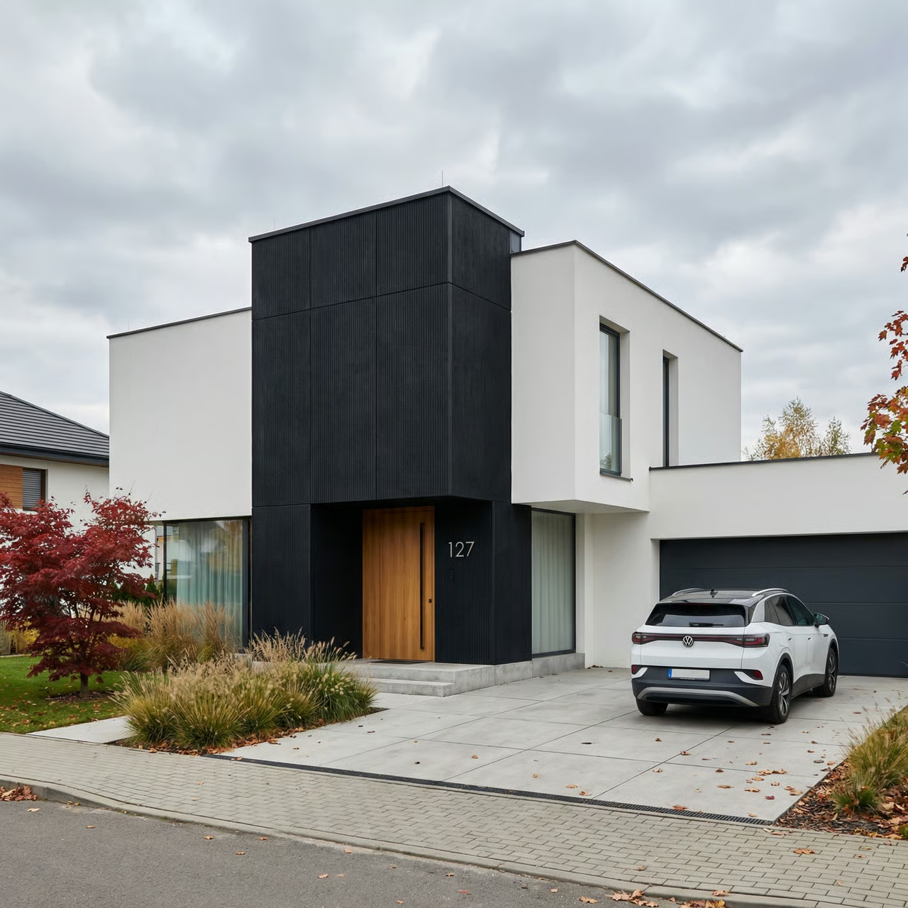 Płyta elewacyjna BOLD Mineral Czarny o wymiarach 3000×1200 mm to nowoczesny materiał wykończeniowy wykonany z kompozytu kwarcowo-polimerowego. Powstaje poprzez wytłaczanie zmielonego kwarcu i polimeru pod bardzo wysokim ciśnieniem, co zapewnia wyjątkową wytrzymałość. Charakterystyczna pionowa struktura z głębokimi żłobieniami odwzorowuje estetykę surowego betonu architektonicznego. Grubość zaledwie 7 mm pozwala na montaż bez obciążania konstrukcji, a pełna wodoodporność i odporność na UV gwarantują długotrwałą eksploatację.
