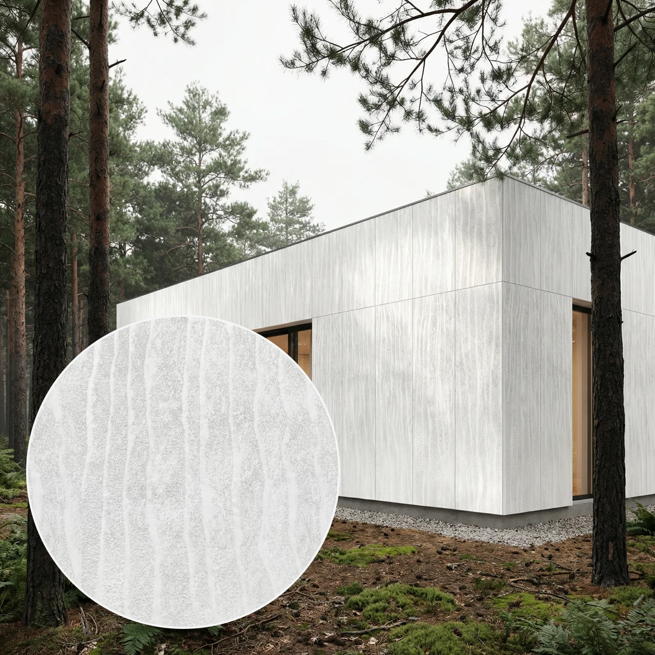Płyta elewacyjna Onda Mineral Bianco o wymiarach 3000×1200 mm wykonana z kompozytu kwarcowo-polimerowego wytłaczanego pod wysokim ciśnieniem. Grubość zaledwie 7 mm zapewnia montaż bez obciążenia konstrukcji. Powierzchnia odwzorowuje teksturę piasku ukształtowanego przez wodę z pionowymi, falistymi żłobieniami tworzącymi dynamiczny wzór. Materiał charakteryzuje się pełną wodoodpornością oraz odpornością na promieniowanie UV, mróz i zmienne temperatury. Przeznaczona do zastosowań na elewacjach zewnętrznych budynków mieszkalnych i komercyjnych.