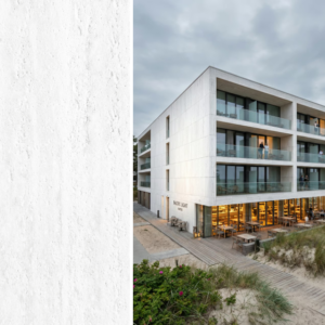 Płyta elewacyjna Pietra Mineral Bianco o wymiarach 2400×1200 mm wykonana z kompozytu kwarcowo-polimerowego metodą wytłaczania pod wysokim ciśnieniem. Panel o grubości 4 mm charakteryzuje się powierzchnią wiernie odwzorowującą teksturę naturalnego trawertynu z charakterystycznymi porami i pionowym żyłkowaniem. Materiał wykazuje pełną wodoodporność oraz odporność na promieniowanie UV, mróz i zarysowania. Elastyczna konstrukcja umożliwia montaż na zakrzywionych powierzchniach bez ryzyka pęknięć.