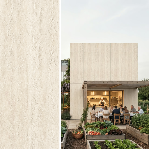 Płyta elewacyjna Pietra Mineral Crema o wymiarach 2400×1200 mm to nowoczesny panel wykończeniowy wykonany z kompozytu kwarcowo-polimerowego. Materiał wytłaczany pod wysokim ciśnieniem o grubości 4 mm z pełną wodoodpornością. Powierzchnia wiernie odwzorowuje teksturę naturalnego trawertynu z charakterystycznymi porami i pionowym żyłkowaniem. Panel odporny na promieniowanie UV, mróz i zmienne warunki atmosferyczne. Zastosowanie na elewacje budynków mieszkalnych i komercyjnych.