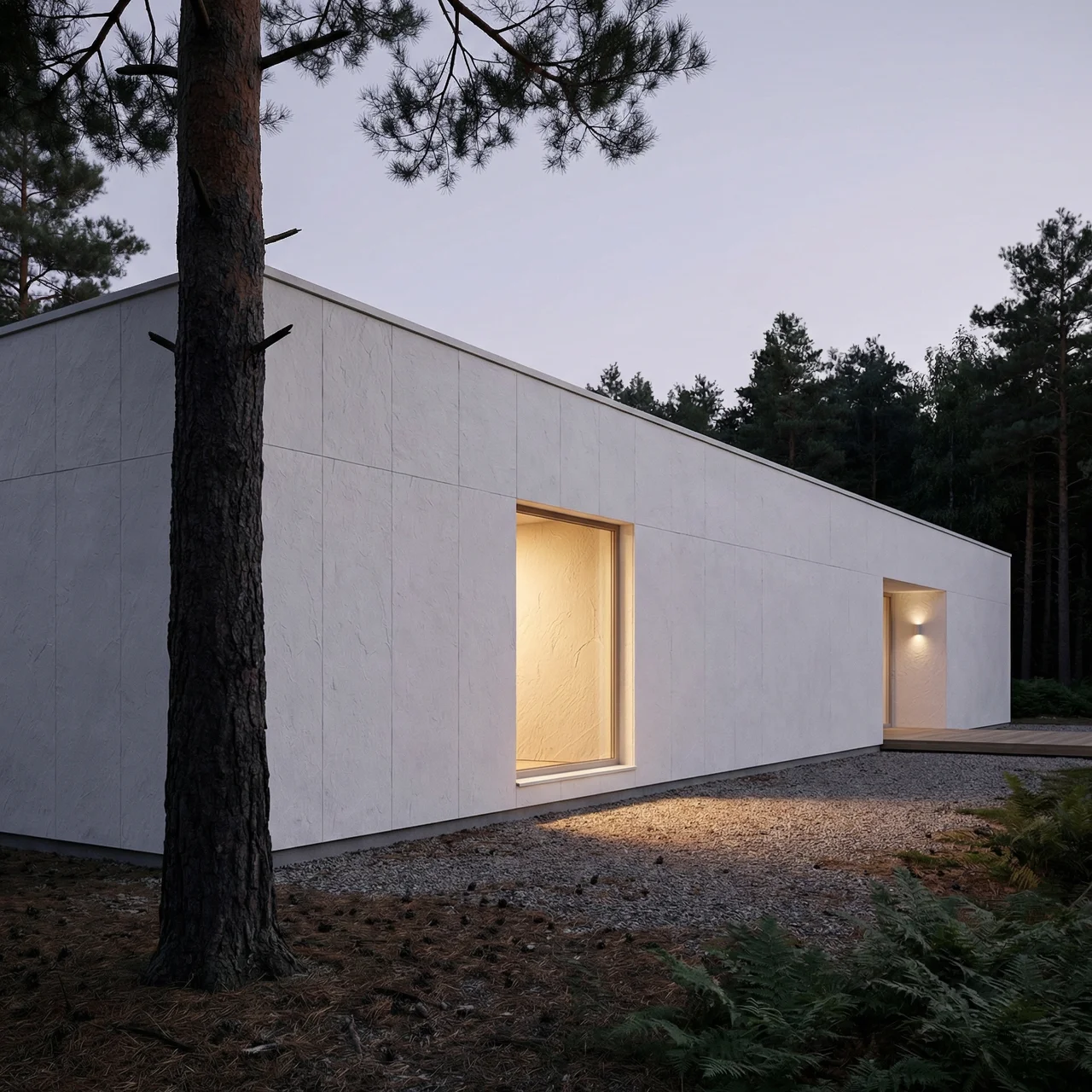 Rdzeń z kompozytu kwarcowo-polimerowego wytłaczanego pod wysokim ciśnieniem · Grubość panelu 7 mm · Pełna wodoodporność · Odporność na promieniowanie UV, mróz i zmienne warunki atmosferyczne · Odporność na plamy i zarysowania · Elastyczna konstrukcja umożliwiająca gięcie i dopasowanie do zakrzywionych powierzchni · Matowe, mineralne wykończenie w czystej bieli odporne na blaknięcie