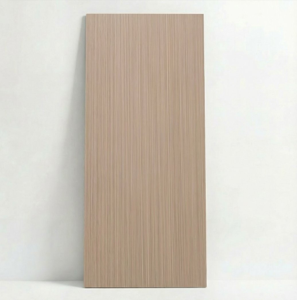 Panel wykonany z włókna węglowego i kompozytu polimerowego o grubości 5 mm · Lekka i elastyczna konstrukcja dopasowująca się do powierzchni · Wielkoformatowy panel o wymiarach 2900 × 1220 mm · Wzór drewniany jasny odwzorowujący naturalną fakturę drewna