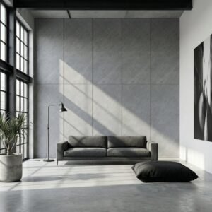 Płyta węglowa panel ścienny C-PANEL PRO A7625-8 o wymiarach 2900 × 1220 mm wykonana z włókna węglowego i kompozytu polimerowego. Panel charakteryzuje się grubością 5 mm oraz wzorem szarego betonu, który nadaje wnętrzom industrialny charakter. Produkt odporny na wilgoć i łatwy w czyszczeniu sprawdza się w domach prywatnych oraz przestrzeniach komercyjnych. Montaż odbywa się poprzez przyklejenie panelu bezpośrednio do ściany bez konieczności wiercenia i używania dodatkowych elementów mocujących.
